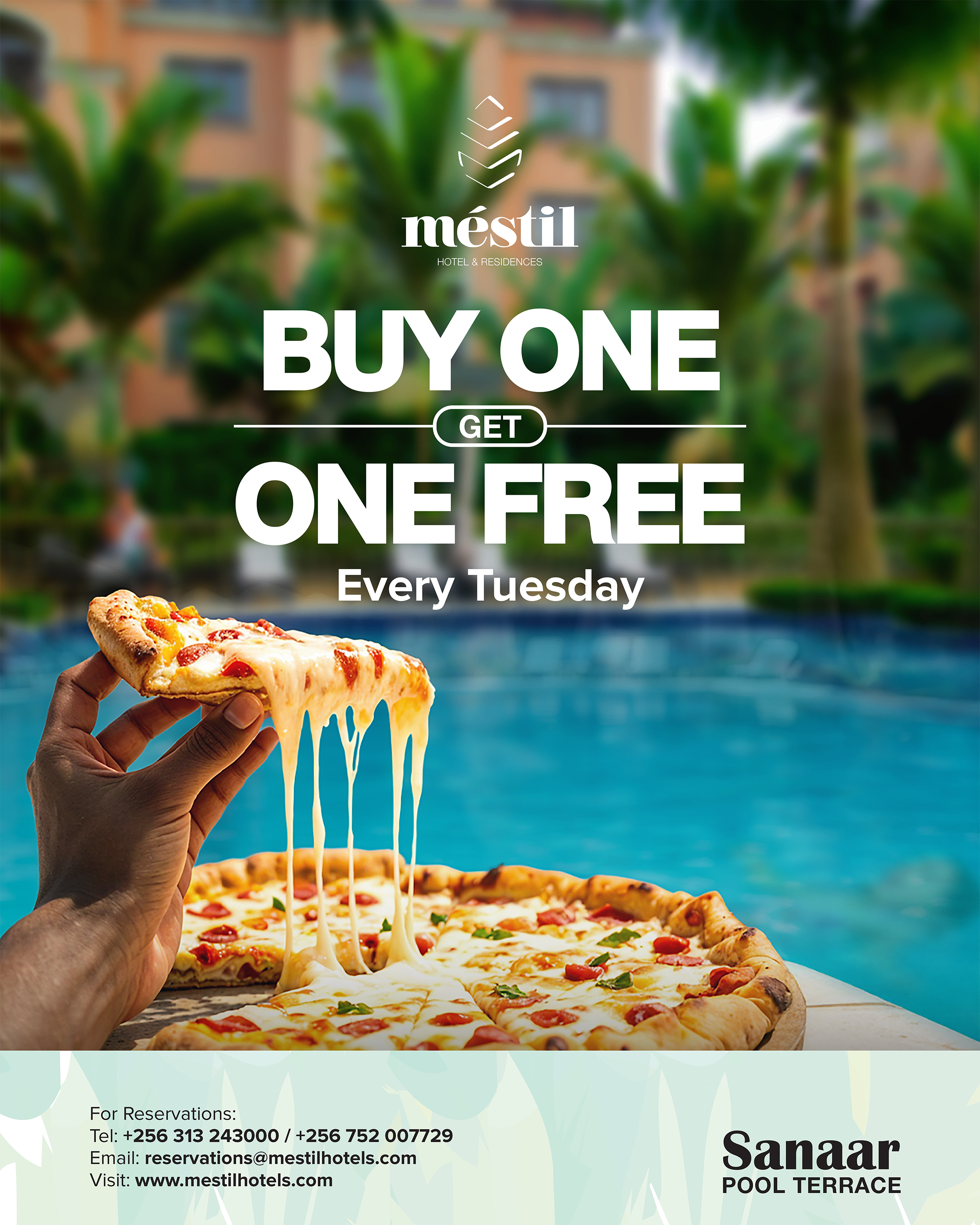 Indulge in double the delight with our signature pizza offer, exclusively at the pool terrace.